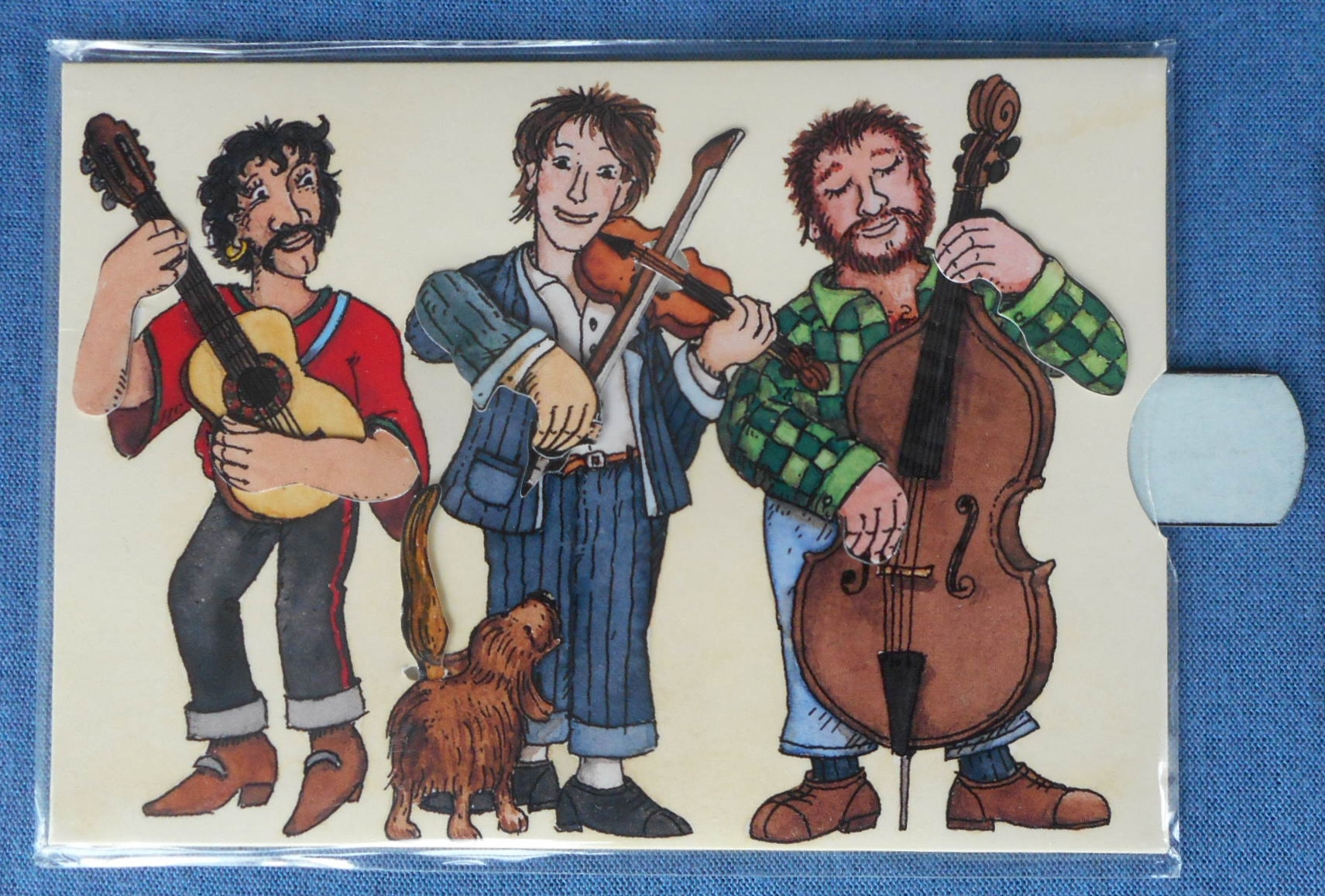 The musicians start to play when the tab is pulled. One of five animated cards in a pack from Die Lebende Karte (“The Living Card”). Purchased in 2012.
