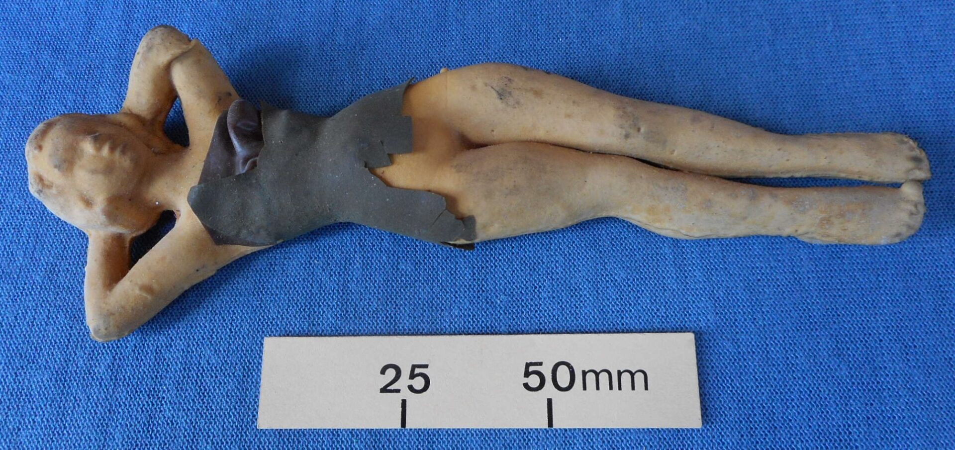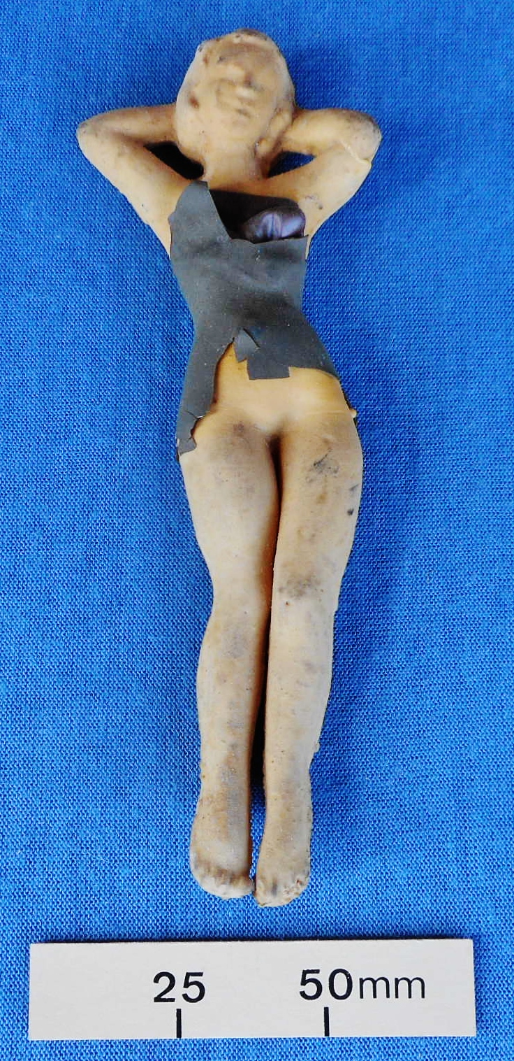This lady was made out of rubber. Sadly, the example in our collection is now perished. In her heyday, if you squeezed her tummy she underwent a wardrobe malfunction. The advertisement is from the Demon Telegraph of November 1951. View Details if you are an adult.