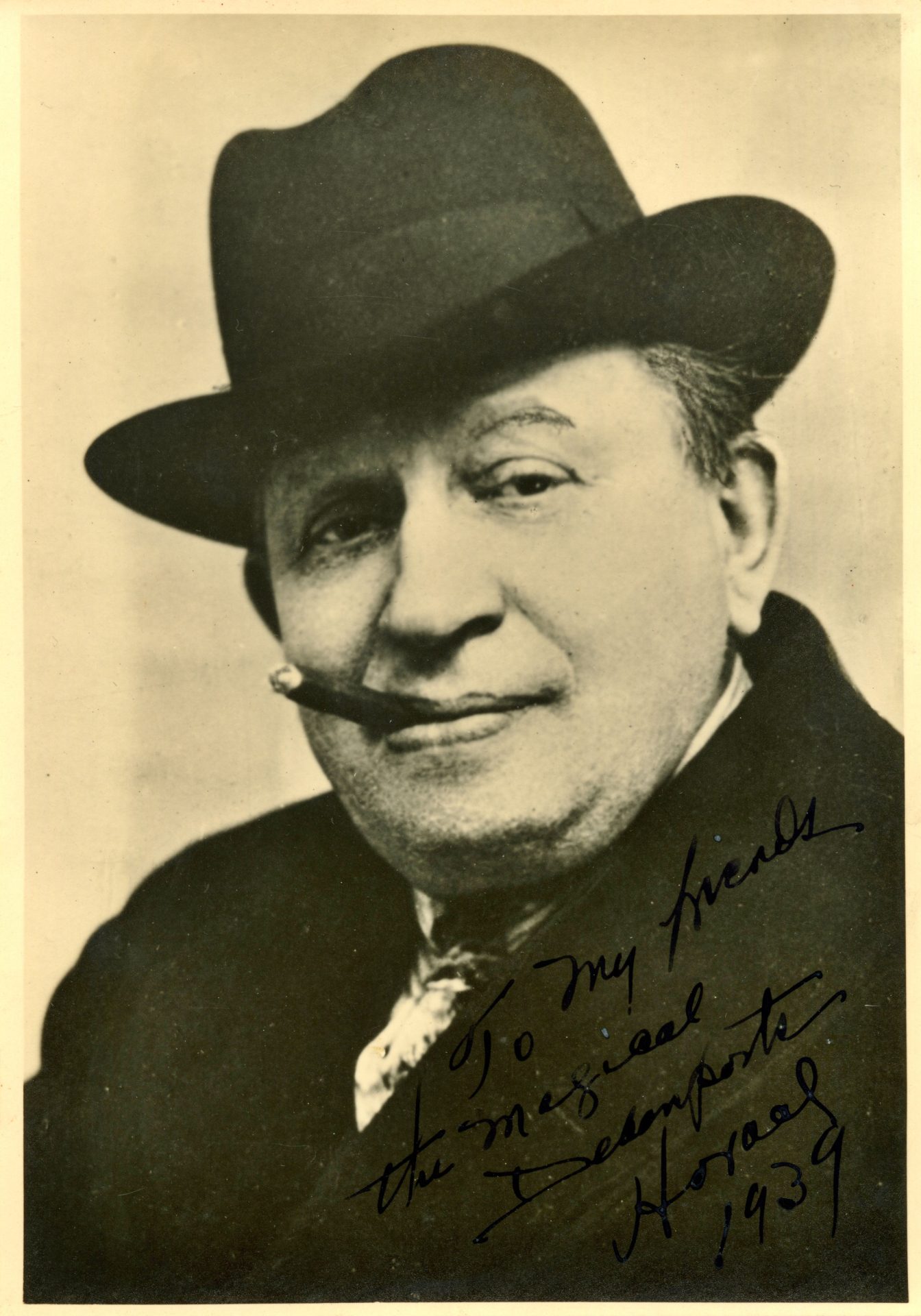 Horace Goldin was one of the great magicians and illusionists of the early 20th century. He was known for performing at a fast pace using no patter. His publicity often included the words Silence is Goldin. Many magicians remember him as the person who had an argument with Selbit over who first invented the sawing a woman in half trick. The Davenport family took this film of Goldin performing on stage, probably in London in the 1930s. Unfortunately the cine camera was faulty, so the film is of poor quality. Nevertheless, we show it here because the content differs from many on the internet.