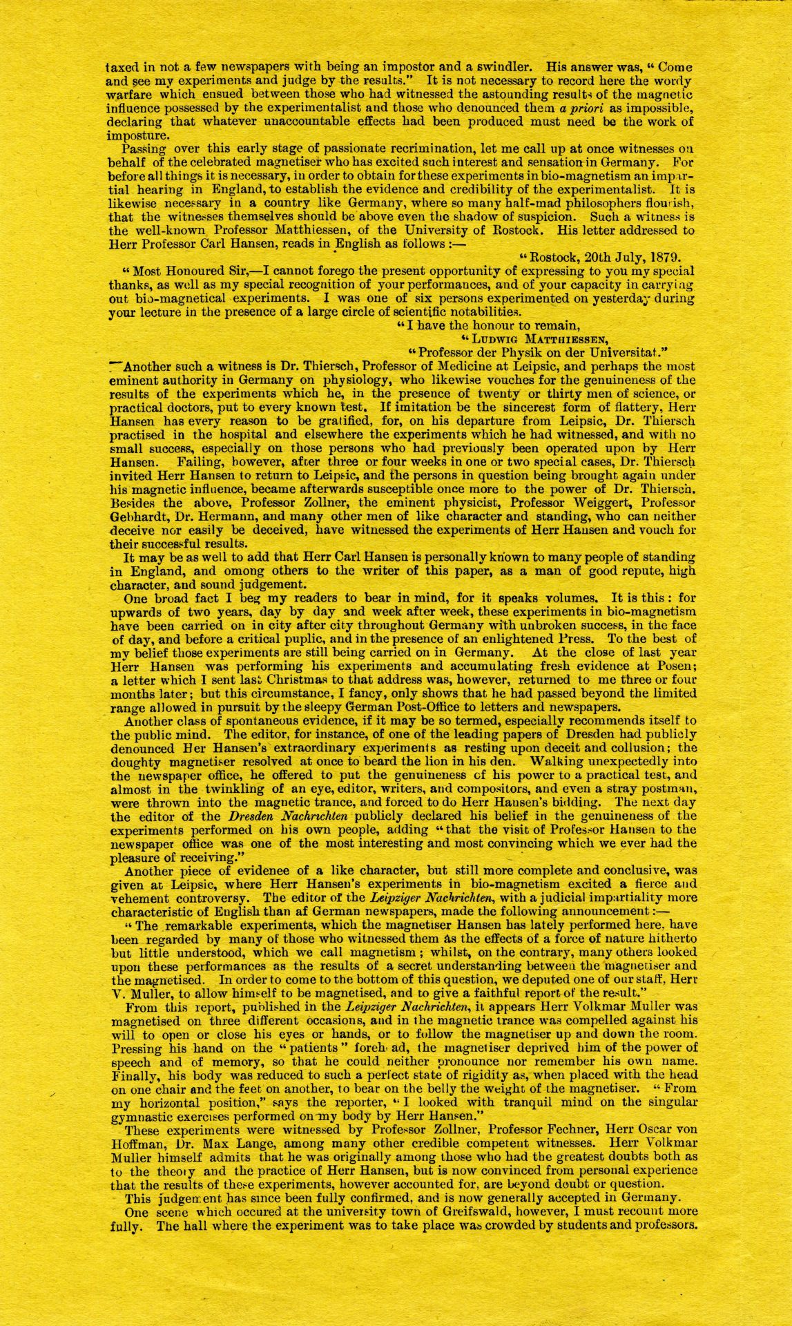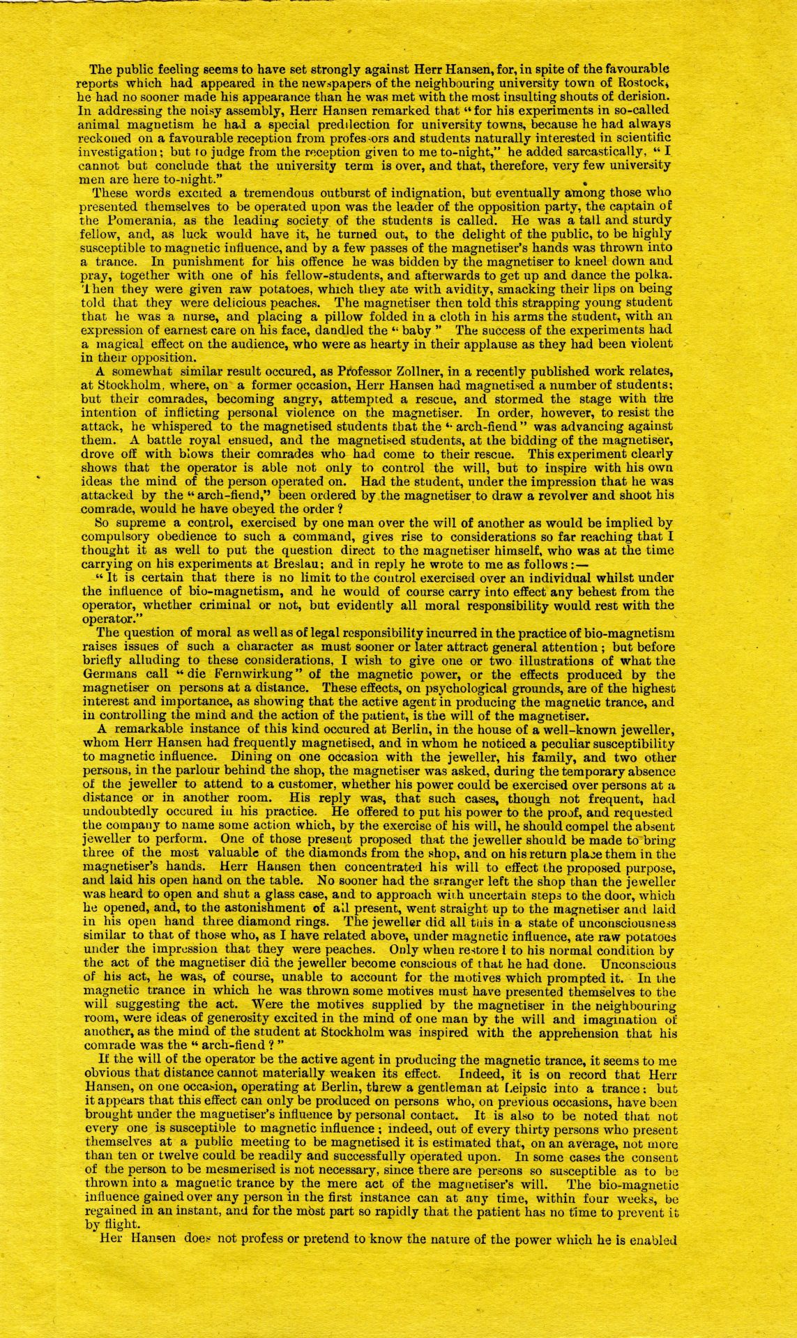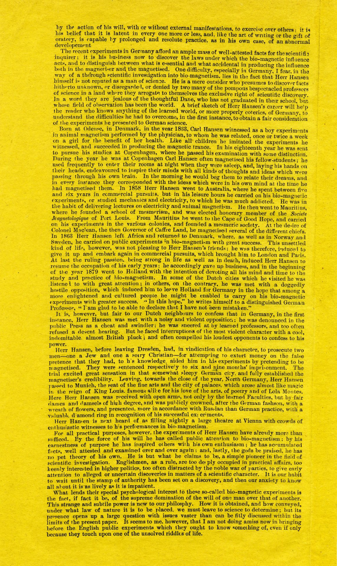 The article is headed Egyptian Hall, Piccadilly, and was presumably produced for sale at the Hall. It includes information on ‘Recent Bio-magnetic Experiments in Germany’. The article, and the review of the performance also included here, give a good idea of what the audience saw at the Egyptian Hall.