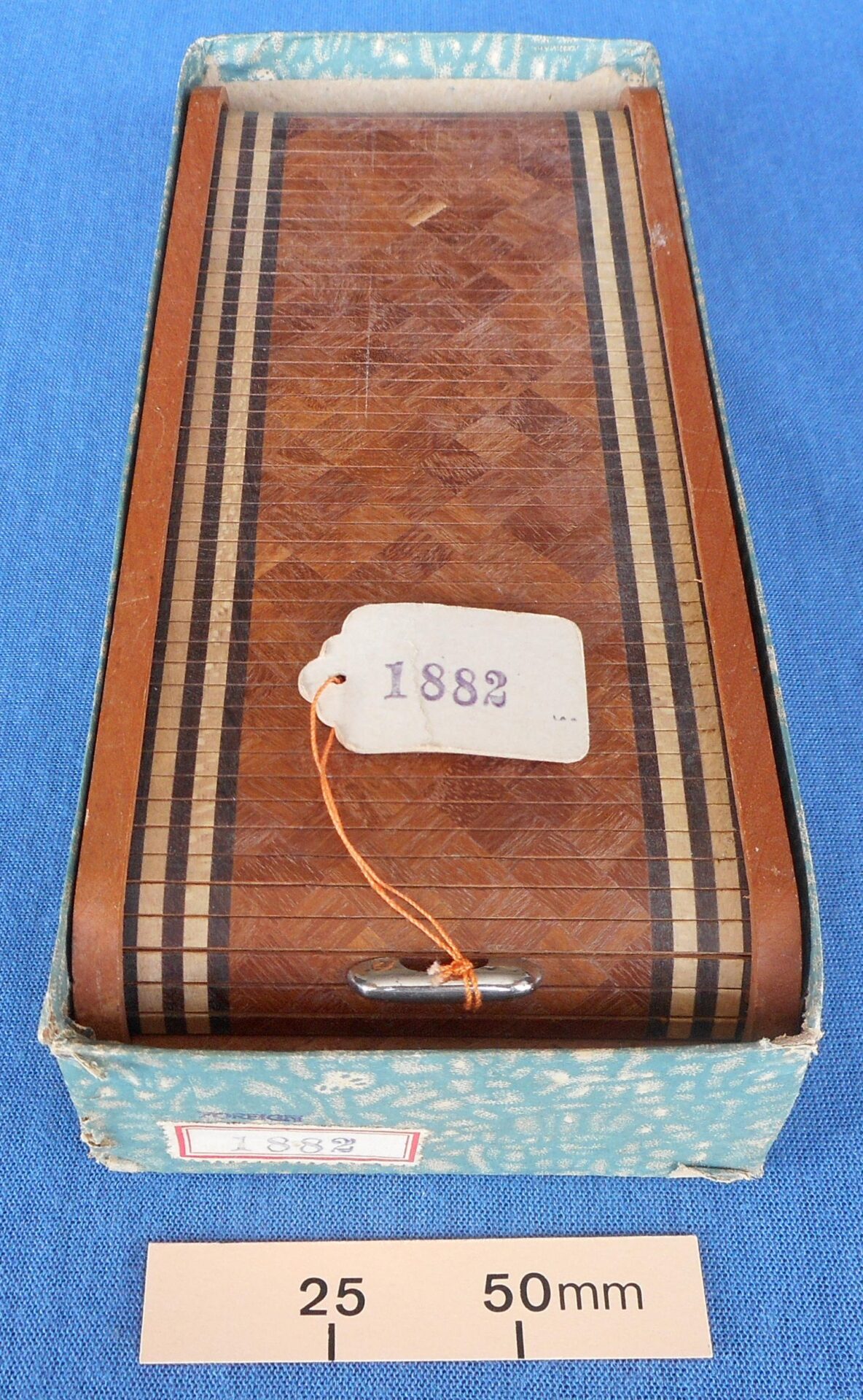 This box was made in Japan, although the bottom of the box is simply stamped FOREIGN. The box has a sample label on it with the number 1882. This was clearly a sample sent to Davenports, but we do not know from which Japanese supplier it came.