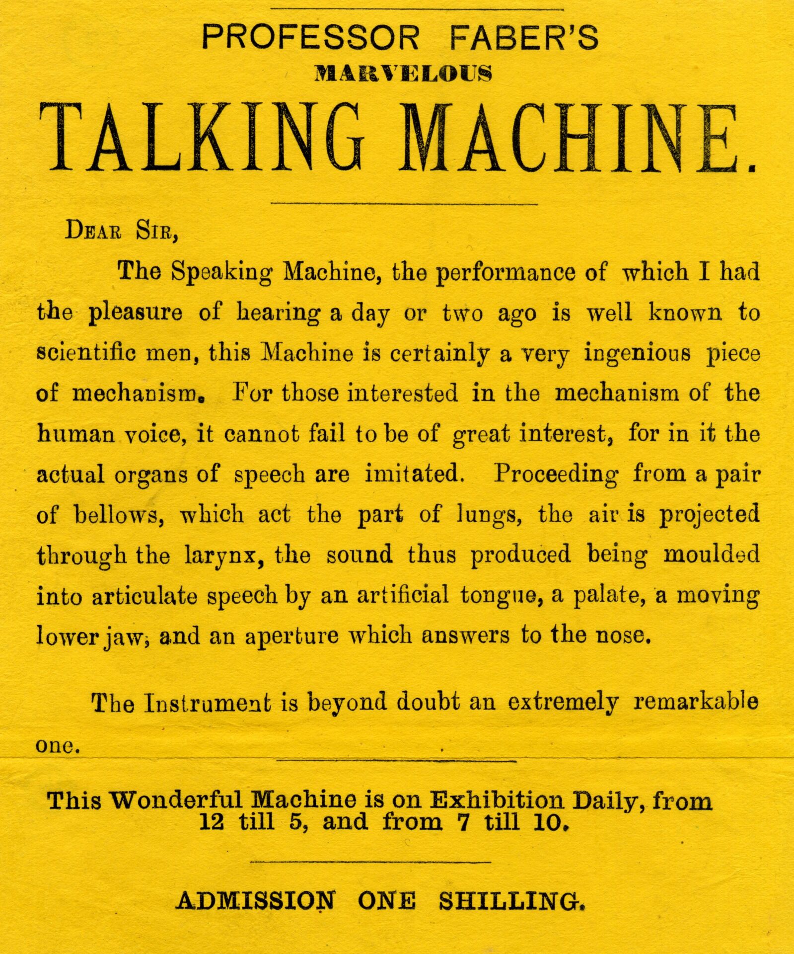 These four items give considerable information about Professor Faber’s Talking Machine. How much of it can be believed is another matter.