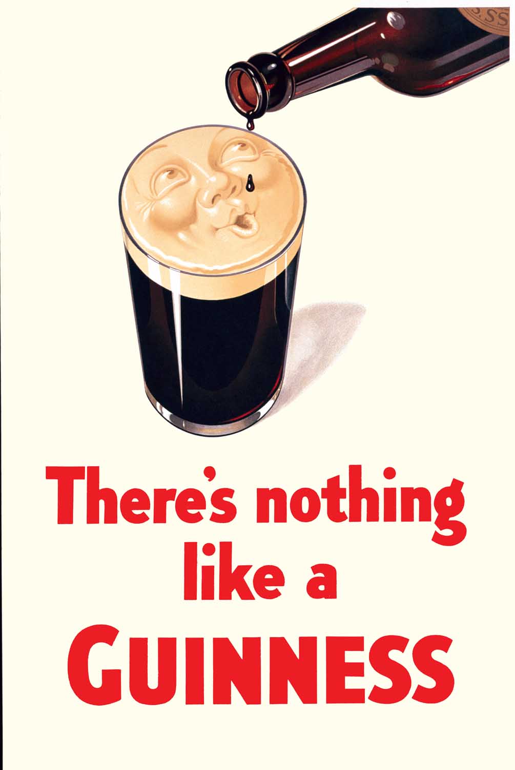 The face has eye and mouth movements. Betty Davenport recalls that the face was made by Mr Insull for an advertising company during the 1950s. It was never collected. It is most likely that the face is based on the Guinness Smiling Pint image that was used in Guinness advertising from the 1930s to the 1950s. The Guinness Archive holds no record of such a ventriloquial face being commissioned by Guinness. We wish to credit the Guinness Archive for this information and for permission to make use of the Guinness image for comparison with this item.